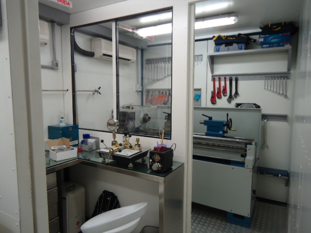 O Laboratório Móvel é dotado de excelente estrutura de atendimento, equipado com equipamentos e instrumentos de ponta no mercado: bancadas hidráulicas e pneumáticas, instrumentos padrão de referência e um torno para reparos de componentes.